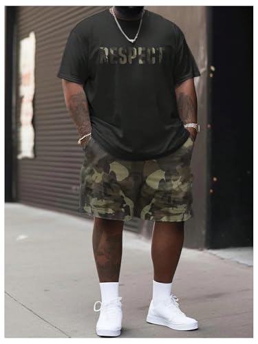 More information about GORGLITTER Men's Plus 2 Piece Camo Outfits Letter Graphic Tee Shirts Drawstring Shorts Tracksuit Set
