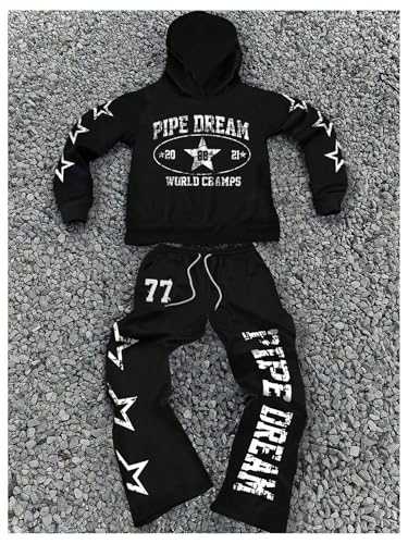 More information about Men's 2 Piece Sweatsuit Long Sleeve Graphic Hoodies and Designer Stacked Sweatpants Jogging Suit