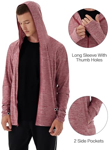 • 【Full Zipper Hooded &Thumb Holes Design】Our sun protective full zipper hooded Jacket for men features hooded design preventing your neck/face form sunburn in the sun. Long Sleeve with thumbholes design shows more fashion sense,keeps the sleeves in places & trap warmth and give extra coverage for sun protection With Long Sleeve.