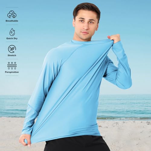 • Highly Effective Sun Protection: the UPF50+ men rash guard shirts can effectively block 98% of UV rays and protect the skin from damage; the long sleeves can provide additional sun protection