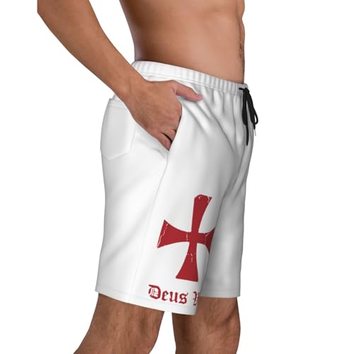 Deus Vult Knights Templar Cross Mens Swim Trunks Quick Dry Board Shorts 7" - Hawaii Beach Swimwear 7