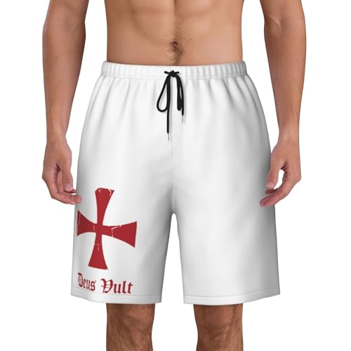 Deus Vult Knights Templar Cross Mens Swim Trunks Quick Dry Board Shorts 7" - Hawaii Beach Swimwear 1
