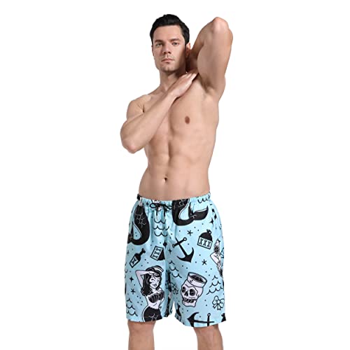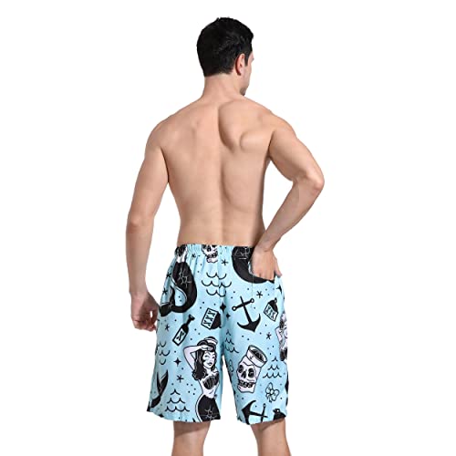 SARA NELL Mens Mermaid and Skull Swim Trunks Board Shorts Beach Swimwear Bathing Suit with Mesh Lined and Pockets 6