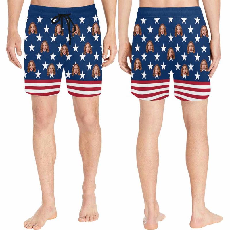 Custom Face Couple Matching Swimwear Independence Day American Flag Swimsuit Personalized Bikini Swim Trunks Gift for Him Her 3