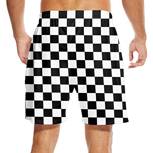 Checkered Men's Swim Trunks with Compression Liner Checkerboard Board Shorts Swimwear Bathing Suits for Men 7 Inch Inseam 6
