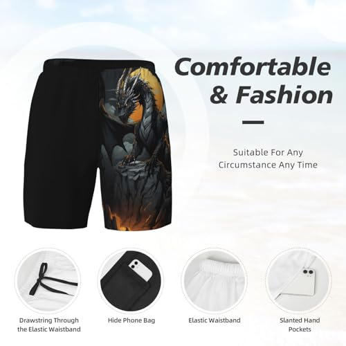 Full Moon Black Dragon Funny Men's Swim Trunks Board Shorts Quick Dry- 6