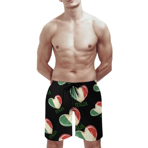 HOT ! Italia Flag Italy Italian Heart Vintage Men's Swim Trunks Lightweight Bathing Suit Board Shorts Hawaiian Beach Swimwear