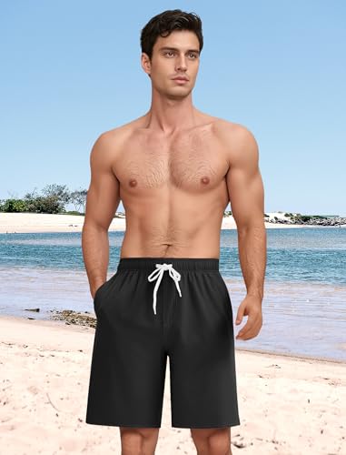 • Swim Trunks Material: High quality mens board shorts, made with ultra quick dry fabric, breathable, lightweight, soft and comfortable; machine washable and water repellen