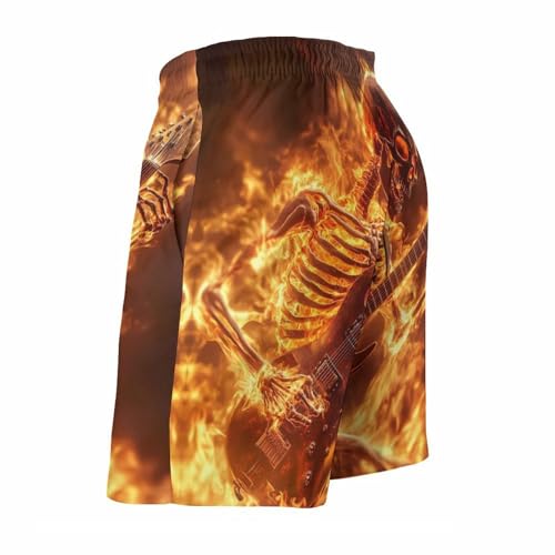 Human Skeleton Playing Guitar in Fire Men's Swim Trunks Quick Dry Board Shorts Hawaiian Beach Shorts With Pocket 7
