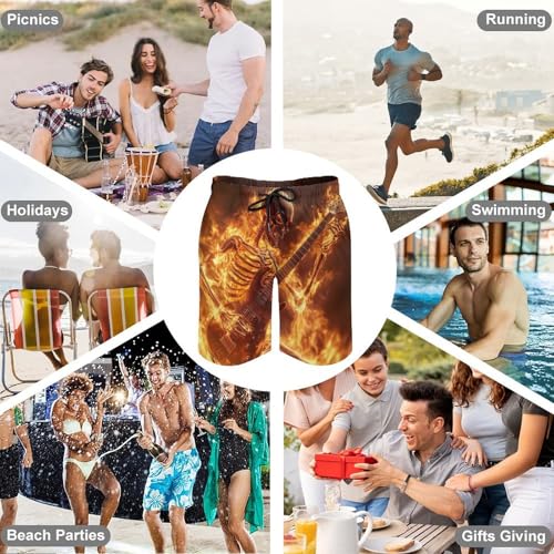 Human Skeleton Playing Guitar in Fire Men's Swim Trunks Quick Dry Board Shorts Hawaiian Beach Shorts With Pocket 5