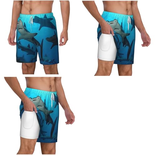 HOT ! Men's Swim Trunks Quick Dry Board Shorts Hammerhead Sharks Beach Shorts with Pocket Bathing Suits for Men