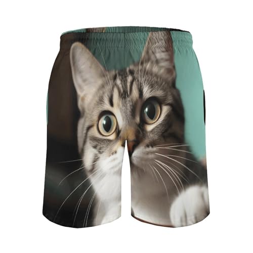 Mens Shorts A Curious Cat Men Swim Trunks Quick-Dry Beach Shorts with Drawstring Pocket Bathing Suit 4