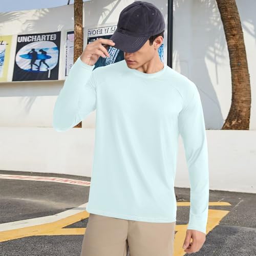 Light Cyan Blue Men's Rash Guard Lightweight Comfort Mens Sun Shirts UV Protection Long Sleeve Running 5
