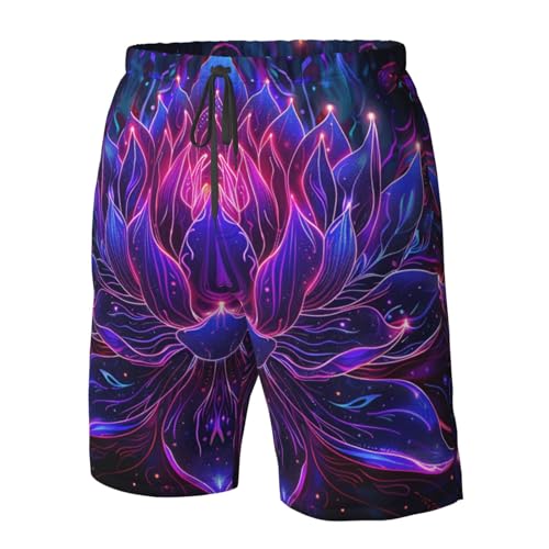 HOT ! Lotus Flower Psychedelic Energy and Spiritual Neon Purple Men's Quick Dry Swim Trunks Surfing Beach Mesh Board Shorts