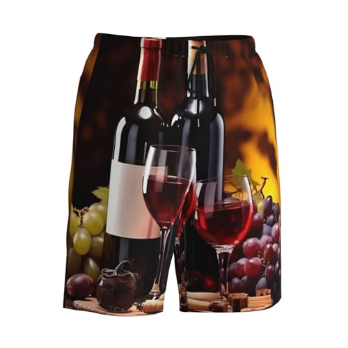 HOT ! Grapes Wine Bottles and Drink Print Men's Beach Pants Lightweight Quick-Dry Swim Pants with Mesh Lining for Men
