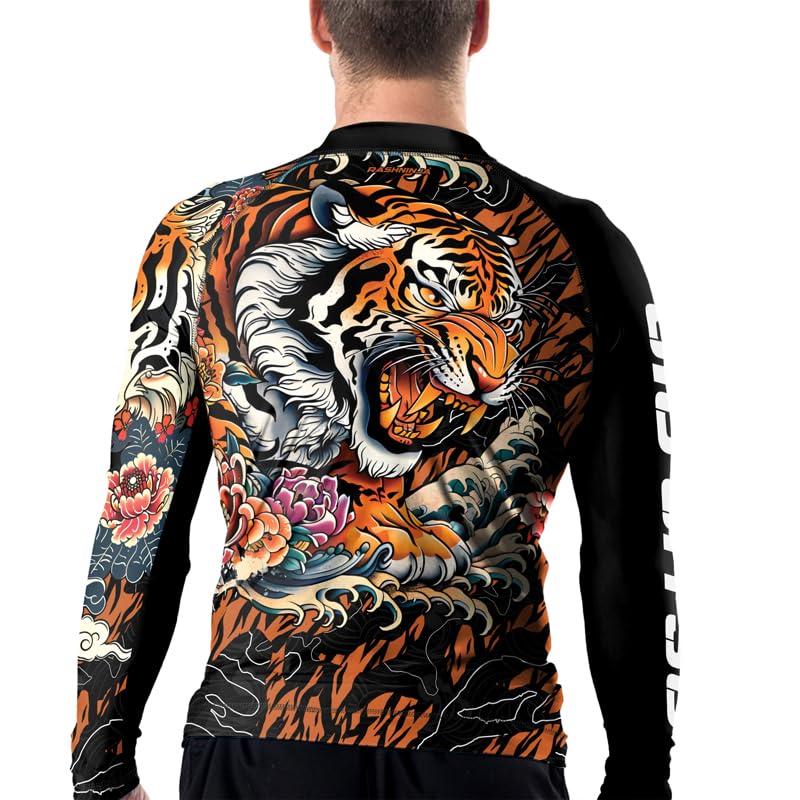 Tiger Compression Rash Guard Men's Long Sleeve Ultra-Tight Stretchable Baselayer Shirt for BJJ Jiu Jitsu Muay Thai 4