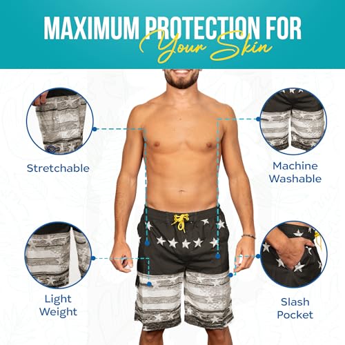• Premium Sun Defense:Banana Boat's UPF50+ swim trunks men keep your skin safe from the sun, helping avoid sunburns and harm over time. With the tight weave construction of these mens shorts, you will get strong protection from sunlight, making them great for outdoor activities