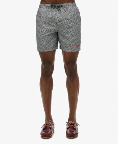 HOT ! Superdry Men's AOP 16 Swim Shorts, Black/White