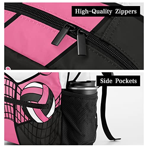 Personalized Volleyball Pink Black White Multifuction Backpack with Name Text for Women Men Gift 1