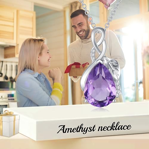 • SIZE - Pendant size:0.47*0.84inch/12*21.5mm. Chain length: 18 inches with 2 inches adjustable extender. We trust that you will greatly enjoy this february amethyst gemstone necklace!