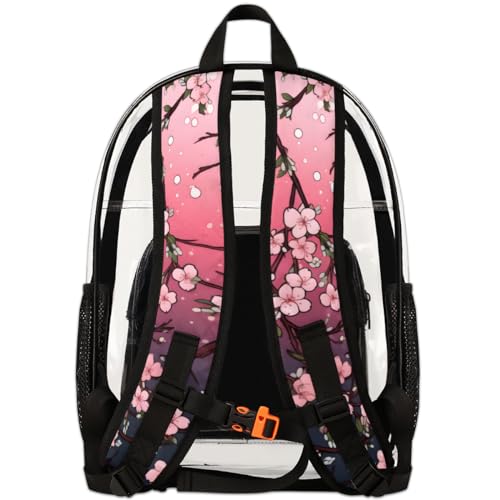 More information about Japanese Cherry Blossom Personalized Clear Backpack Custom Large Clear Backpack Heavy Duty PVC Transparent Backpack with Reinforced Strap for Work Travel