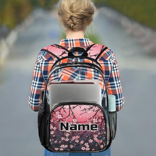 Japanese Cherry Blossom Personalized Clear Backpack Custom Large Clear Backpack Heavy Duty PVC Transparent Backpack with Reinforced Strap for Work Travel 4