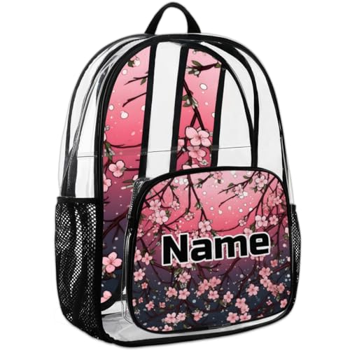 Japanese Cherry Blossom Personalized Clear Backpack Custom Large Clear Backpack Heavy Duty PVC Transparent Backpack with Reinforced Strap for Work Travel 1