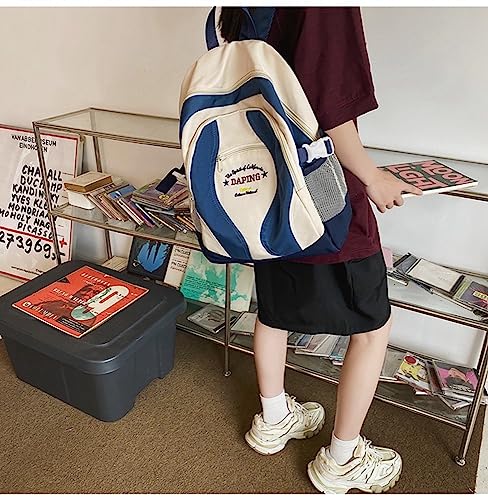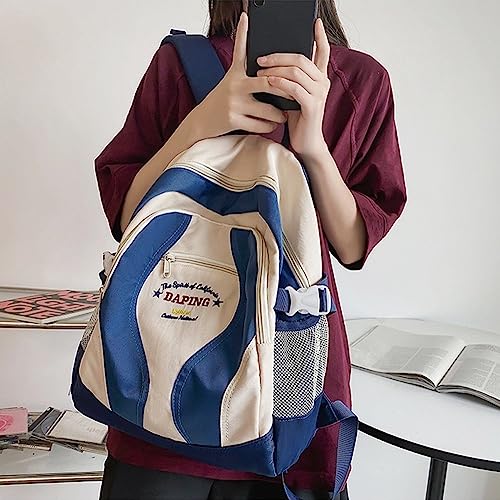 HOT ! JHTPSLR Preppy Backpack Vintage Aesthetic Backpack American Style Backpack Book Bags Casual Daypack Sports Backpack Supplies (Blue)