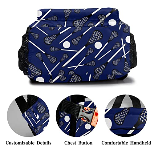 Custom Dark Blue Lacrosse Sticks Waterproof Backpack Bookbag with Name for Birthday Holiday Gift 1