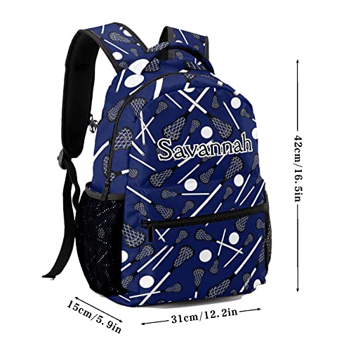 Custom Dark Blue Lacrosse Sticks Waterproof Backpack Bookbag with Name for Birthday Holiday Gift 4