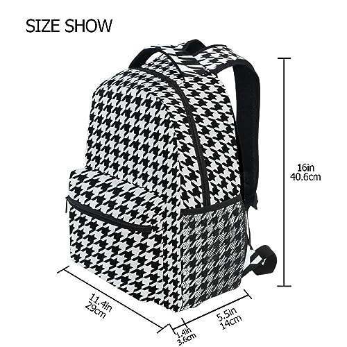 Black-white Houndstooth Backpack Water-Resistant Lightweight Bookbags Travel Bag with Mesh Side Pockets 1