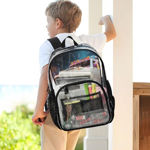 Colorful Truck Clear Backpack Lightweight Large Capacity See Through Bookbag Transparent Daypack Bag, 12L 7