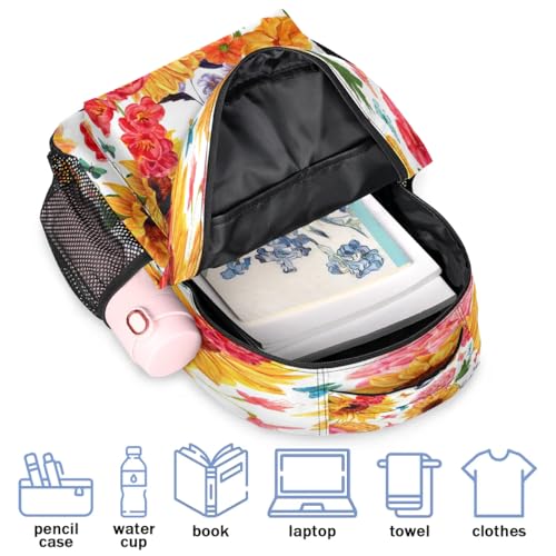 16 Inch Backpack Sunflower Peony Retro Waterproof Lightweight Travel Back Pack Adjustable Casual Rucksack For Men Women Daypack Fits Travel Outdoor Sport Work Hiking Gym Gifts 6