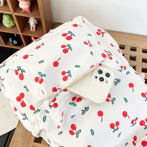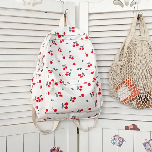 HOT ! Women Cherry Print Backpack Large Capacity Cute Bookbag Adjustable Strap Cherry Pattern Backpack for Teens