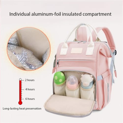 • 【LARGE CAPACITY】The portable backpack diaper bag has multiple individual pockets to hold most baby essentials. The bottle bag has three insulated pockets and wet/dry pockets to hold up to three bottles and keep them warm. Two side pockets hold wipes and diapers to keep them neatly organized and easily accessible. Size: 26*18*38cm.