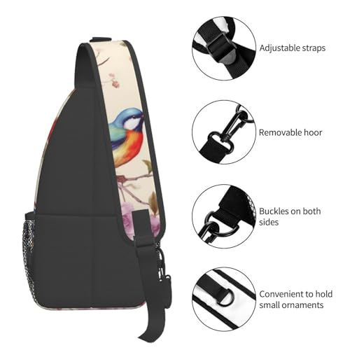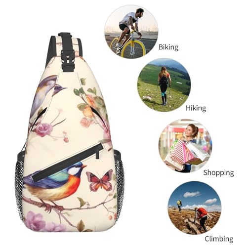 Birds On Branches And Butterflies Sling Bag Waterproof Lightweight Crossbody Shoulder Backpack Chest Bags Travel Hiking Casual Daypack For Women Men 7