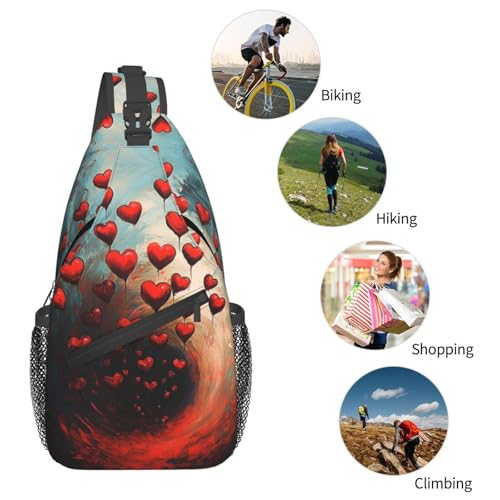 HOT ! Valentines Day Hearts Crossbody Sling Bag For Women Men Fashion Adjustable Chest Bag Shoulder Bag Sling Backpack Daypack For Sport Travel Hiking