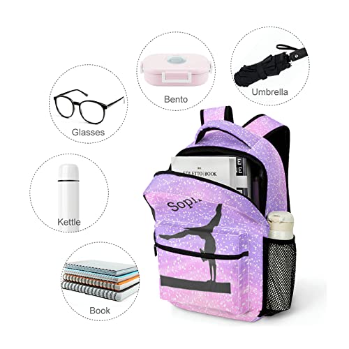 Girls Gymnastics Abstract Backpack Personalized Book Bag Sport Casual Hiking Camping Pack with Name 4