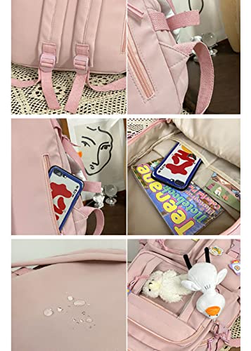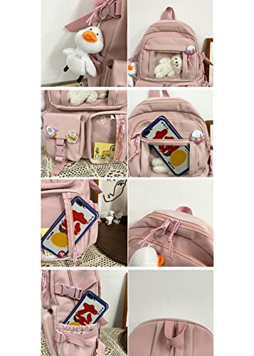 YAQUNICER Kawaii Daypacks Cute Bear and Duckling Pendant Backpack Large Capacity-Green 5