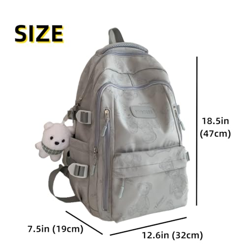 More information about Cute Aesthetic Backpack Kawaii Bear Backpack with Cute Pendant Casual Daypack Travel Bookbag Large Capacity (White)