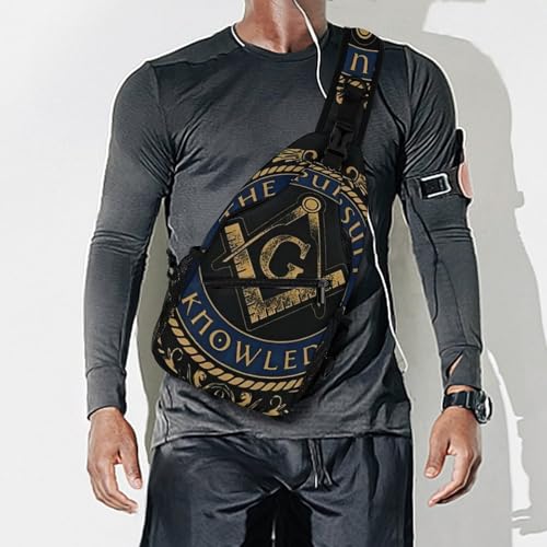 HOT ! Masonic Symbols Freemasonry Sling Bags Men And Women Shoulder Backpack Chest Bag Cross Body Chest Sling Backpack., 15x8x4in