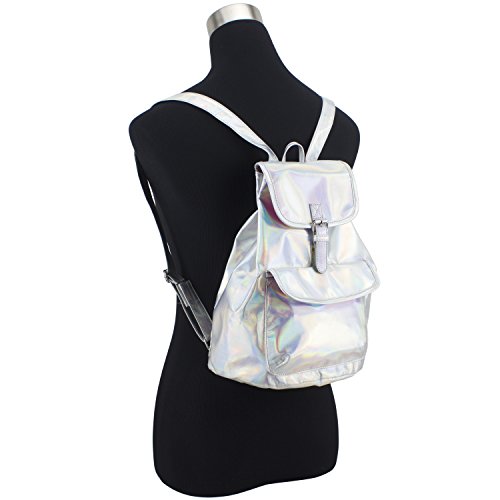 BJX Iridescent Reflective Luminous Holographic Flap Daypack Rusksack Bag Backpack, Shiny Silver 5