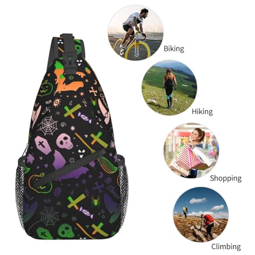 Halloween Crossbody Chest Daypack Casual Backpack Bag Gothic Bats Shoulder Bags Pumpkin Bag 6