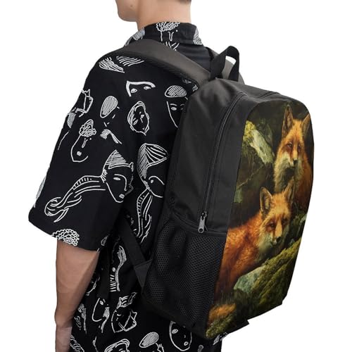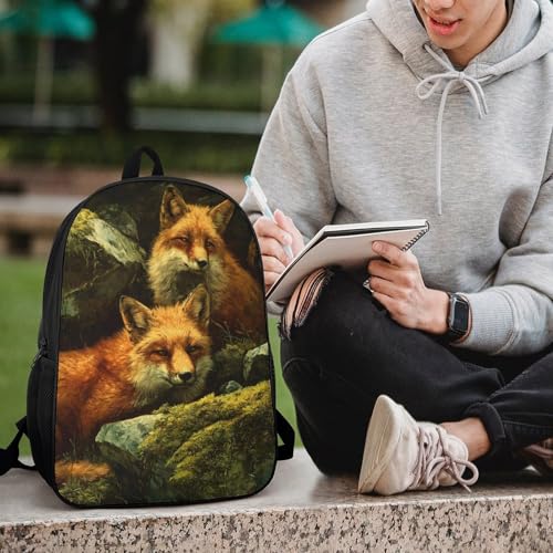 Foxes Forests Rocks Moss Unisex Backpack 17" Casual Daypacks Simple Shoulders Bag for Camping Hiking Travel Gear 1