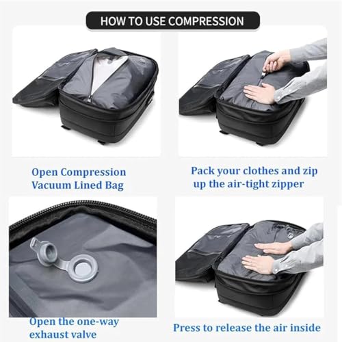• 【Designed for the Modern Traveler】Packed with practical features including a lock, USB 4.0 charging ports, a luggage strap, widened padded shoulder straps, breathable back padding, and premium zippers. This vacuum compression backpack helps you travel smarter—carrying more with less bulk