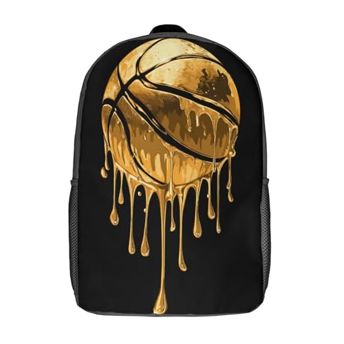 HOT ! Dripping Gold Basketball Unisex Backpack 17" Casual Daypacks Simple Shoulders Bag for Camping Hiking Travel Gear