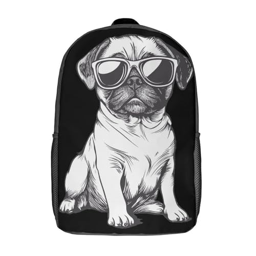 Black White Cool Pug Puppy Unisex Backpack 17" Casual Daypacks Simple Shoulders Bag for Camping Hiking Travel Gear 1