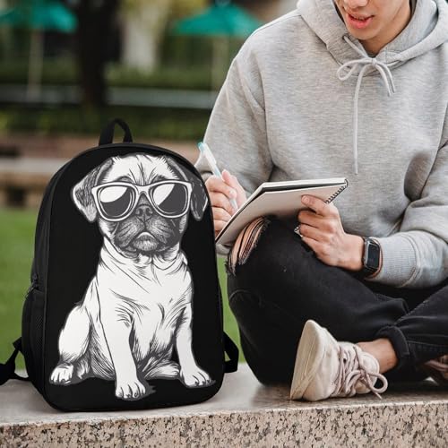 Black White Cool Pug Puppy Unisex Backpack 17" Casual Daypacks Simple Shoulders Bag for Camping Hiking Travel Gear 5