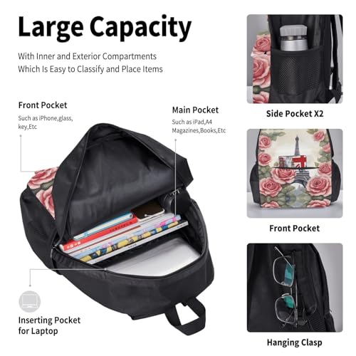 • Complete 3-Piece Set: This Eiffel Tower Rose Flower Set Includes A Spacious Backpack, A Practical Lunch Bag, And A Handy Pencil Case, Providing All The Essentials For Work Or Travel.