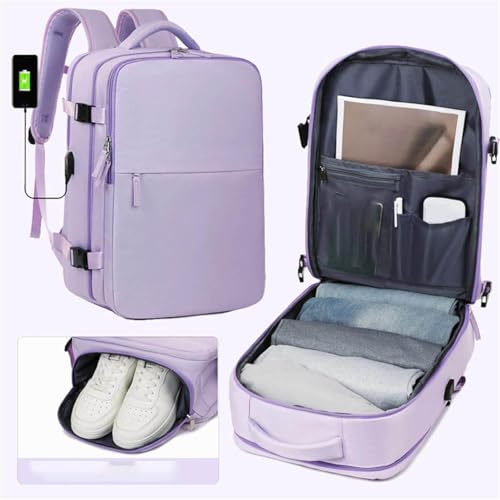 HOT ! Travel Backpack for Men and Women, Large Capacity 25L Lightweight Backpack with Separate Shoe Compartment, Business Work Bag (Purple)